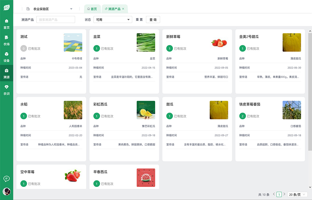 溯源耘管理體系建立了一物一碼的農(nóng)產(chǎn)品安全追溯系統(tǒng),記錄農(nóng)產(chǎn)品從定植到采摘的全程追溯,幫助農(nóng)業(yè)生產(chǎn)和流通企業(yè)實現(xiàn)產(chǎn)品防偽鑒真,通過精準(zhǔn)獲取客戶分布數(shù)據(jù),助力農(nóng)產(chǎn)品精準(zhǔn)營銷。
